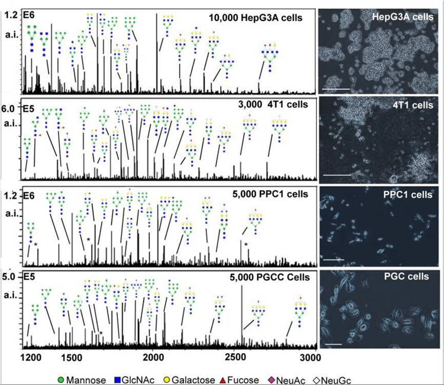 Antibody panel-based N-glycan imaging is a novel platform for N-glycan analysis of immunocaptured proteins. This platform consists of antibodies spotted in an array panel to a microscope slide, specific capture of glycoproteins from a biological sample, and then enzymatic release of N-glycans using PNGaseF PRIME™ for analysis by MALDI MSI. N-glycans are detected at each individual spot, allowing N-glycan information to easily be linked back to its protein carrier.